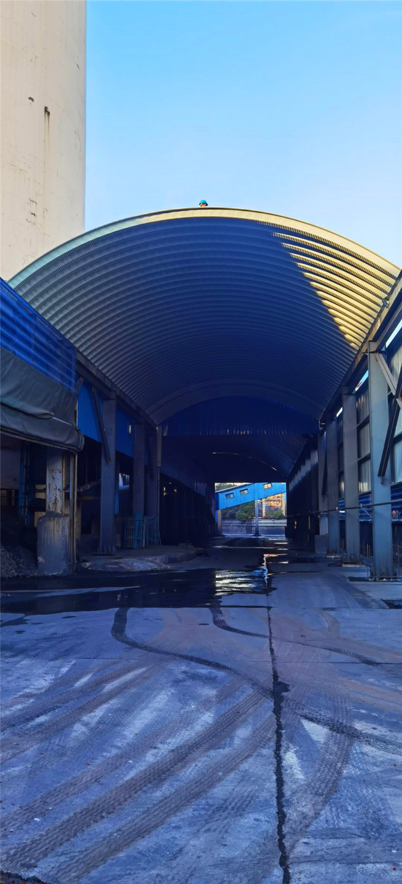 拱形波紋鋼屋蓋結構在防塵、耐候及施工周期方面表現(xiàn)出較好優(yōu)勢,適用于煤棚封邊及混凝土廠等需要揚塵治理和封閉頂棚的工業(yè)項目。